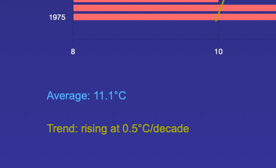 It looks like it’s been a warm year in London. The second warmest in the past 50 years. There’s a warming trend of 0.5° per decade.